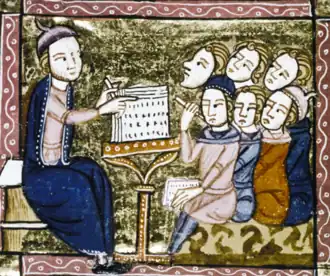 In his capacity as the Franciscan lector at Oxford, he was responsible for copying five large volumes of postills[20] for Sir Hugh of Nottingham, who was a clerk at the Royal Exchequer.[21][7]
