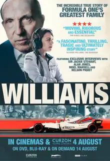 Williams is a 2017 British feature documentary film that tells the story of the Williams Formula 1 team, from its inception. The film was produced by BBC Films, Minnow Films and Curzon Artificial Eye, and was distributed in cinemas across the UK and Ireland by Curzon Artificial Eye from 4 August 2017.