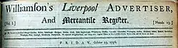Williamson's Liverpool Advertiser was the first successful newspaper published in Liverpool.[1] A previous newspaper had been founded in 1712, but it failed after two years. However, on 28 May 1756, Robert Williamson, a local printer, launched Williamson's Liverpool Advertiser.