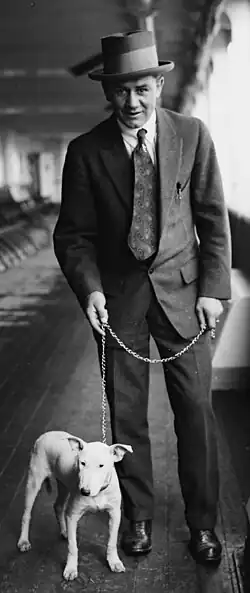 He held the title for two years, successfully defending it four times.[3] In 1914, he sailed to London to face the British lightweight champion, Freddie Welsh. Welsh won the 20-round match by decision.[3][5]