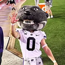 Willie is known to be tough but also mischievous. He is K-State's #1 fan. The student inside the mascot costume (whose identity is kept secret) changes every few years, and the persona of Willie has remained the same throughout.[6] Willie has been known to crowd surf and he also does one push-up for each point on the board for K-State when the Wildcats score a touchdown or make a field goal at football games. He also leads crowds in his signature K-S-U chant in which he moves his arms in legs to form a 'K'-'S'-'U' then fist pumps to signal the crowd to yell "WILDCATS" 3 times in a row. Willie also signs various objects using his iconic signature, signing his name "Willie Wildcat" in which a paw print is drawn and used in place of the "W" in both words.