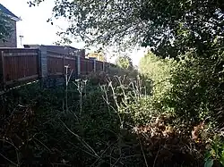 The stationmaster's house from the original Willoughby station has survived, as have the brick goods shed and loading dock which are in industrial use.[6] Very little remains of the second Willoughby station and the aid of a map is necessary to find it.[16] The remains of the down main platform are visible from what is now a ploughed field; on the platform may be seen two concrete posts which supported the station running in board.[17] It is still possible to access the trackbed between the platforms and one gate from the level crossing survives on the south side of the line next to the stationmaster's house which is a private residence.[10] The footbridge was dismantled and now spans a fishing pond at nearby Burgh Le Marsh.[10] Approximately one mile of the former Mablethorpe branch line from the station site at Willoughby has been converted into a nature reserve and footpath.[18]
