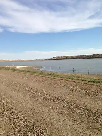 Willow Bunch Lake is shallow salt lake with a surface area of about 3,287.9 hectares (8,125 acres).[3] It sits in the Big Muddy Valley, which was formed over 12,000 years ago near the end of the last ice age when a glacial lake outburst flood occurred from a pre-historic glacial lake located at present-day Old Wives Lake.[4] In the summer, extensive mudflats develop at the east and west ends of the lake providing habitat for a variety of species, including the piping plover.