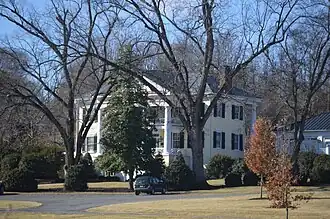 Willow Grove, also known as the Clark House, is a historic plantation house located near Madison Mills, Orange County, Virginia. The main brick section was built about 1848, and is connected to a frame wing dated to about 1787. The main section is a 2+1⁄2-story, six-bay, Greek Revival-style brick structure on a high basement. The front facade features a massive, 2+1⁄2-story, tetrastyle pedimented portico with Tuscan order columns, a full Tuscan entablature, an arched brick podium, and Chinese lattice railings. Also on the property are numerous 19th-century dependencies and farm buildings, including a two-story schoolhouse, a one-story weaving house, a smokehouse, and a frame-and-stone barn and stable.[3]