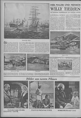 - ^ a b c d e f g "Der Maler und Mensch Willy Tiedjen". Hamburger Nachrichten (in German). Hamburg. 4 January 1936. p. State and University Library Hamburg Carl von Ossietzky. Retrieved 16 August 2025.