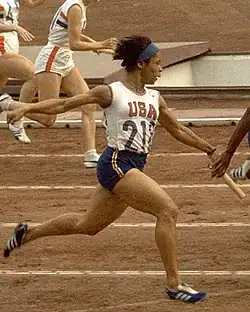 Willye Brown White (December 31, 1939 – February 6, 2007)[2] was an American track and field athlete who took part in five Olympics from 1956 to 1972.[3] She was America's best female long jumper of the time and also competed in the 100 meters sprint. White was a Tennessee State University Tigerbelle under Coach Ed Temple. An African-American,[4] White was the first U.S. athlete to compete in track in five Olympics.