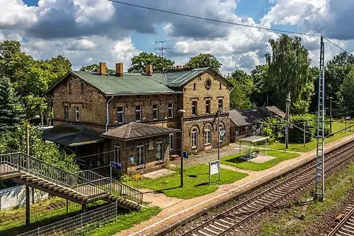 Wilmersdorf (Angermünde) station (German: Bahnhof Wilmersdorf (Angermünde)) is a railway station in the Wilmersdorf district in the municipality of Angermünde, located in the Uckermark district in Brandenburg, Germany. The station lies on the Angermünde–Stralsund railway and the train services are operated by Deutsche Bahn.
