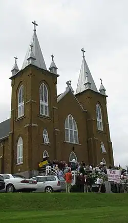 This supper has been an annual event since 1936. Approximately 2,000 people have been served each year during Labour Day Weekend. The food is authentic Kaszebe–Polish fare; one source states that it includes "boiled chicken, mashed potatoes, gravy, fresh vegetables, such as carrots, cucumbers, tomatoes, pickles, and of course choices of apple, raisin, and coconut cream pies".[18] In 2019, some 3,000 meals were served by volunteers; the 550 pies were also baked by volunteers.[19]
