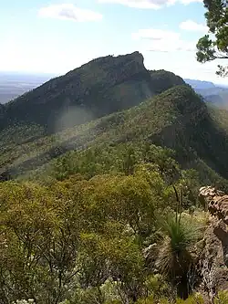 The Adnyamathanha people's language and culture (Yura Muda) passed down their tale of how the Wilpena peaks were formed by two dreaming serpents (Akurras) which ate a large number of people gathered for a celebration which caused the serpents to be unable to move from their eating grounds. The head of the male and female serpents formed St. Mary Peak and Beatrice Hill respectively.[6]