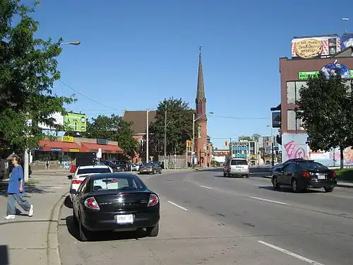 There are two streets in Hamilton, Ontario named Wilson Street, one in downtown Hamilton and the other in Ancaster. In 2001 when Amalgamation took place Ancaster joined up and became a part of the new Hamilton along with the towns of Dundas, Flamborough, Glanbrook and Stoney Creek. The name of the main road that cuts through Ancaster is also named Wilson Street.[2] Originally, Wilson Street in downtown Hamilton was part an Indian Trail. Other city roads that were Indian Trails include, York Boulevard and King Street in the Lower City plus Concession Street and Mohawk Road on the Hamilton mountain.[3]