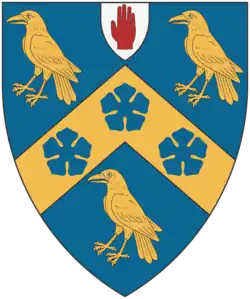 | Arms | Az. on a chev. engr. between three Cornish choughs or, as many cinquefoils of the first.[1] |