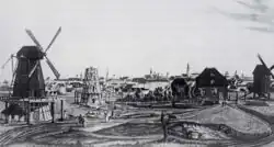 The freedom of trade, introduced in Prussia in 1810 via the Stein-Hardenberg reforms, replaced guild restrictions, sparking a brief mill construction boom. By c. 1860, approximately 150 mills operated in Berlin and its surrounding villages, mostly outdated Post Mills due to limited capital, few millers could afford the more efficient but costlier Dutch Mills.[2]