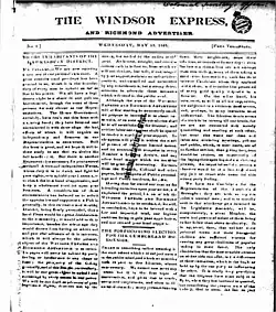 - ^ "Front page". Windsor Express and Richmond Advertiser. 9 May 1844. Retrieved 5 June 2013.