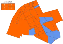 Winning party in each polling division of Windsor West at the 2022 Ontario general election