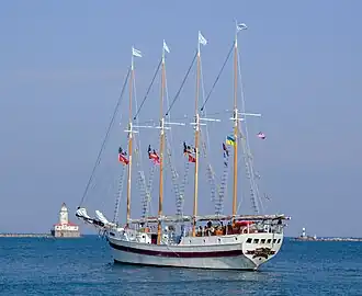 Windy is a four-masted schooner located in Chicago, Illinois, United States.[1] She is moored at Navy Pier. She was built in 1996 in Charleston, South Carolina, and is owned and operated by Tall Ship Windy as a passenger tour boat.[2] In 2004, Windy was designated the official tall ship of the City of Chicago by mayor Richard M. Daley.[3] She is the only tall ship moored in Chicago.