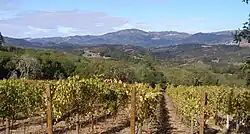 Sonoma Mountain AVA vineyard in front of the Mayacamas Mountains