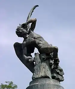 Wenders employed Peter Handke, who wrote much of the dialogue, the poetic narrations, and the film's recurring poem "Song of Childhood".[9] Wenders found the names Damiel and Cassiel in an encyclopedia about angels, and also had photographs of Solveig Dommartin, Bruno Ganz and Otto Sander that served as muses.[7] The idea that angels could read minds led to Wenders considering personal dialogue no one would say aloud.[5] Wenders did not view the angel protagonist as representative of himself, instead deciding the angel could be an embodiment of film, and that the purpose of film could be to help people by opening their eyes to possibilities.[10] Handke did not feel able to write a single coherent story, but promised to regularly send notes on ideas during production.[11] Screenwriter Richard Reitinger also assisted Wenders in scripting scenes incorporating Handke's contributions.[12]
