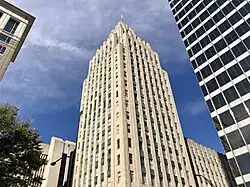 In 1929, the Reynolds Building was completed in Winston-Salem. Designed by William F. Lamb from the architectural firm Shreve, Lamb and Harmon, the Reynolds Building is a 314-foot (96 m) skyscraper that has 21 floors.[22][23] When completed as the headquarters of R.J. Reynolds Tobacco Company, it was the tallest building in the United States south of Baltimore, Maryland, and it was named the best building of the year by the American Institute of Architects.[24] The building is well known for being the predecessor and prototype for the much larger Empire State Building, which was built in 1931 in New York City.[25]