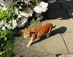 In later life, he was given a cat by Jock Colville for his 88th birthday. This was a ginger cat with white markings that he called Jock too. This cat became a favourite in his final years. When he died and Chartwell was donated to the National Trust, the family asked that a marmalade cat with white bib and socks called Jock should always be maintained there. This tradition has continued and Jock VII became the current holder of this position in 2020.[1][7]