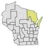The 1st Senate district of Wisconsin is one of 33 districts in the Wisconsin Senate.[1] Located in northeast Wisconsin, the district comprises all of Door and Kewaunee counties, as well as nearly all of Calumet County, much of northern and western Manitowoc County and eastern and southern Brown County, along with parts of southwest Outagamie County. It includes the cities of Sturgeon Bay and Chilton and parts of the cities of Appleton, Menasha and Green Bay.[2]