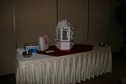 A wedding wishing well is a fancy donation box that gained popularity among bridal couples of certain countries (with one survey done in 2004 on Australia allegedly stating that up to 60% of weddings had them),[1] who have often lived together before marrying, or who have been previously married, and do not need any of the traditional wedding gifts. They are also sometimes found at showers to collect monetary gifts for the guests of honor, as well as wedding wishes or marriage quotes, poems and messages of congratulations. Wishing wells at bridal showers are popular in the NYC/NJ area. Most people bring small gifts, such as spatulas or pot holders, to place in the wishing well. Wishing well gifts could be in addition to gifts bought from the bride’s registry.