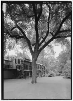 The Olmsted Elm located on the Frederick Law Olmsted National Historic Site in Brookline, Massachusetts, was planted around the year 1810.[5][6] The elm was present when Frederick Law Olmsted bought the property in 1883, which he called "Fairsted".[6] Olmsted and his son, John Charles Olmsted, had removed all the other trees left by an Orchard in the vicinity but decided to keep the elm.[6] The elm was kept on by the National Park Service as an important feature of the South Lawn until it succombed to Dutch elm disease, and was removed on March 30, 2011.[7][5] The elm was replaced with a new, disease resistant variety, a Jefferson Elm, in 2013.[5][7]