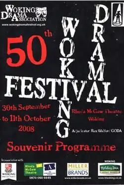 The festival is one of the most enduring amateur festivals of its kind in the United Kingdom, having been founded in 1959 and celebrating its 50th festival in 2008 (from 30 September 2008 to 11 October 2008).[1] The festival is organised by the Woking Drama Association. The first winning play was "Master Dudley by Philip Johnson, performed by the Pyrford Little Theatre.[2]