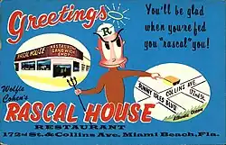 Wolfie Cohen's Rascal House was a Jewish delicatessen located at the intersection of 172nd Street and Collins Avenue in Sunny Isles Beach, Florida. It opened in May 1954 and closed on March 30, 2008. Sporting a large neon sign in the front, the building was designed in the 1950s Miami Modern style.