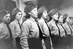 The first Girls Training Corps units were formed in 1941.[8] The GTC's purpose, as with other cadet organisations at the time, was to prepare young people for service to their community and to support in the war effort upon reaching adulthood.[7][9] For the Girls Training Corps this meant training in military drill[10] in preparation for potentially serving in the Auxiliary Territorial Service.[11][12] The GTC was open to girls aged 14 to 20, and its motto was "To serve and Train for Service".[13]
