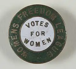 The Women's Freedom League[1] was an organisation in the United Kingdom from 1907 to 1961 which campaigned for women's suffrage, pacifism and sexual equality. It was founded by former members of the Women's Social and Political Union after the Pankhursts decided to rule without democratic support from their members.[2]