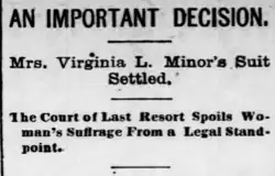 - ^ a b c d Anderson, Caiti (2016-04-22). "Minor v. Happersett: The Supreme Court and Women's Suffrage". State of Elections. Retrieved 2020-09-21.