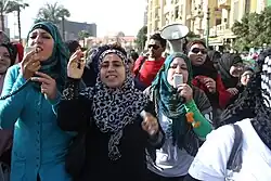 A 2010 Pew Research Center poll showed that 45% of Egyptian men and 76% of women supported gender equality.[33] The same poll showed that, in principle, people tend to accept a woman's right to work outside the home, with 61% of the respondents agreeing that "women should be able to work outside the home", but at the same time showing some reservations, with only 11% of men and 36% of women completely agreeing with that statement; and 75% agreeing that "when jobs are scarce, men should have more right to a job".[34] Polls taken in 2010 and 2011 show that 39% considered gender equality "very important" to Egypt's future post-revolution and 54% of Egyptians supported sex segregation in the workplace.[35][36]