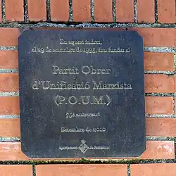A plaque commemorating the location where POUM was founded on Calle Montserrat de Casanovas.