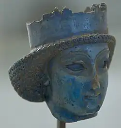 The consort of the Sasanian ruler (the shāhanshāh, "king of kings") was crowned as bānbishnān bānbishn ("queen of queens"). Her main duty was to preside over the women's section of the imperial palace.[9] Zoroastrianism in the Sasanian Empire evidently allowed for female rule:[9] the empire was towards its end twice ruled by women, under the ruling queens Boran (r. 630, 631–632) and Azarmidokht (r. 630–631).[13] Although their accession had only been possible due to the elimination of all possible male claimants, there is no record of any overt religious opposition to their rule.[13] Boran's coinage claims divine endorsement for her rule, stating that the queen "originated" from the gods and would restore Sasanian power.[13]