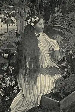 An old woman from the Cook Islands sewing a tivaevae.A portrait of a pure-caste Rarotongan girl from the Cook Islands, before 1906.Makea Takau, Queen of Rarotonga, the Cook Islands. This photograph was taken during her trip to Auckland, New Zealand in 1885.