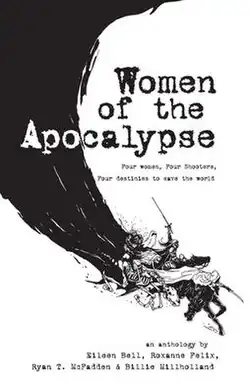 Women of the Apocalypse is an anthology of four fantasy novellas, published in September 2009 by Absolute XPress.[1] There is a brief framing device, in which four archangels attempt to activate four human male heroes to save the world from the Four Horsemen of the Apocalypse but mistakenly empower four women. Each novella centers around one woman's trials against one of the Horsemen. The anthology won the Prix Aurora[2] in 2010. Cover art was by Herman Lau, while the design was by John Teeter.
