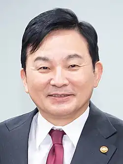 Won Hee-ryong (Korean: 원희룡; born February 14, 1964) is a South Korean politician [1] who was the Minister of Land, Infrastructure and Transport from May 2022 to December 2023, when he resigned to run for a parliamentary seat in Incheon, held by Democratic Party leader Lee Jae-myung. He was a member of the 16th, 17th, and 18th National Assembly, and a Supreme Council Member of the conservative Grand National Party. He was governor of Jeju Province until his resignation on 11 August 2021.