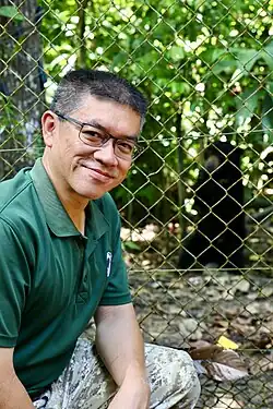 From 2002 to 2005, Wong co-chaired the Sun Bear Expert Team for the IUCN/SSC Bear Specialist Group, a network of voluntary experts within the International Union for Conservation of Nature (IUCN).[11] After visiting the Sepilok Orangutan Rehabilitation Centre, he conceived the idea of establishing a similar facility for sun bears.[9] In 2008, he founded and became CEO of the BSBCC.[12] The centre, located in the Sepilok–Kabili Forest Reserve, works in partnership with the Sabah Wildlife Department, the Sabah Forestry Department, and the NGO Land Empowerment Animals People to rehabilitate sun bears in a forest enclosure that mimics their natural habitat.[4][13] In May 2020, Wong hosted virtual tours of the BSBCC to raise awareness and support for sun bear conservation during the COVID-19 pandemic.[14]