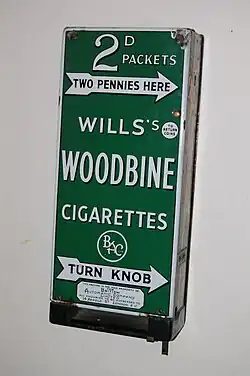 A Woodbine vending machine, now in the Staffordshire County Museum at Shugborough Hall, England