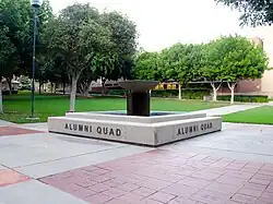The Alumni Quad, with the Business Building in the background.