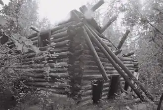 The two-story approximately 23-by-32-foot (7.0 m × 9.8 m) building is built from approximately 10-inch (250 mm) logs, peeled but not hewn. It is "the largest and oldest log structure on the Yukon between Eagle and Circle", and in fact is located halfway between, so it has served as a stopover point. For example, the Biedermmans of Ed Biederman Fish Camp used it as a stopover for dog sledding the mail up and down the frozen Yukon River. The site was also a steamboat stop, in the summer.[3]