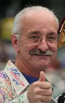 ![]() Flowers gives his signature thumbs up at the 2006 FIRST Championship in Atlanta, Georgia | |