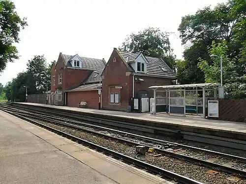 Woodley railway station serves the suburb of Woodley in Stockport, Greater Manchester, England. The station is 9+1⁄4 miles (14.9 km) east of Manchester Piccadilly on a branch of the Hope Valley Line to Rose Hill Marple. It is situated where the A560 road from Stockport to Gee Cross, near Hyde, crosses over the railway line.