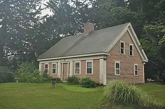The Woodruff House stands east of downtown Southington, on the south side of Berlin Street (Connecticut Route 364) between Pleasant Street and Butternut Lane. It is a 1+1⁄2-story wood-frame structure, with a gable roof, central brick chimney, and clapboarded exterior. Its front facade is five bays wide, with corner pilasters rising to an entablature that runs beneath the eave. The centered entrance is flanked by sidelight windows and pilasters, and is topped by a corniced entablature. Interior features include 18th-century wide pine flooring, some original paneling, and three fireplaces. The entry vestibule, which commonly has a narrow winding staircase in houses of this age, was apparently built without one.[2]