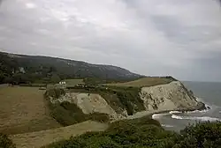 Woody Bay is a small bay on the south coast of the Isle of Wight, England. It lies along the coastline beneath the village of St. Lawrence. The bay faces south towards the English Channel, its shoreline is 260 yards (240 m) in length.[1]