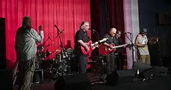 The following evening, Jimmy LaFave and friends officially opened the 2013 festival with Walking Woody's Road at the Crystal Theater in Okemah.[73] The musical and spoken-word event, produced by LaFave, included performances by Sam Baker, The Red Dirt Rangers, Audrey Auld, The Burns Sisters, Ronny Elliot, David Amram, Ronny Cox, Annie Guthrie, Butch Hancock, Radoslav Lorkovic, and Joel Rafael. The band for the evening included Glenn Schuetz (bass), Bobby Kallus (drums), Terry "Buffalo" Ware (guitar/mandolin), and Lorkovic (piano/accordion). LaFave, Cox, and several others provided narration consisting of excerpts from Woody's writings.[73]