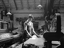 The woollen mills of the Teifi valley were hard-hit by the drop in purchasing power of miners during the depression in the coal trade of the 1920s.[60] In the inter-war period (1918–39) most woollen manufacturers did not adapt to changes in fashion and were forced to close. Small clusters of hand loom weaving survived in places such as Lampeter where there were spinners and fullers, making quality goods. A weaver said of this work, "One can make a fair living by it, but a man can never get rich at it."[36]
