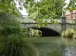 Worcester St runs for roughly 4.3 kilometres (2.7 mi) from west to east through the centre of Christchurch, and is parallel and one block to the south of Gloucester Street. Between Rolleston Avenue and Cambridge Terrace, it is known as Worcester Boulevard, before crossing over the Avon River (pictured). As the street reaches Cathedral Square it has a slight deviation as it curves around the north side of the ChristChurch Cathedral, before continuing eastward towards Latimer Square. Afterwards, the street continues uninterrupted before ending at the intersection with Woodham Road in residential Linwood.