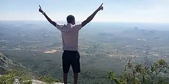 18°09′49″S 32°46′28″E / 18.163743°S 32.774419°EWorld's View is a spectacular vista on the escarpment of the Nyanga Downs plateau in the Eastern Highlands mountain range, just north of Nyanga, in eastern Zimbabwe. It is situated at an altitude of 2,248 metres (7,375 ft) with a 600 metres (2,000 ft) drop to the plain below on the western side.[1]