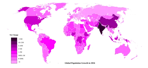 The day was suggested by Dr. K.C.Zachariah in which population reached five billion when he worked as Sr Demographer at World Bank.[4] While press interest and general awareness in the global population surges at the increments of whole billions of people, the world population increases by 100 million approximately every 14 months. The world population was estimated at 7,400,000,000 on February 6, 2016 and reached 7,500,000,000 on April 24, 2017. The world population hit 7,700,000,000 in 2019.[5]